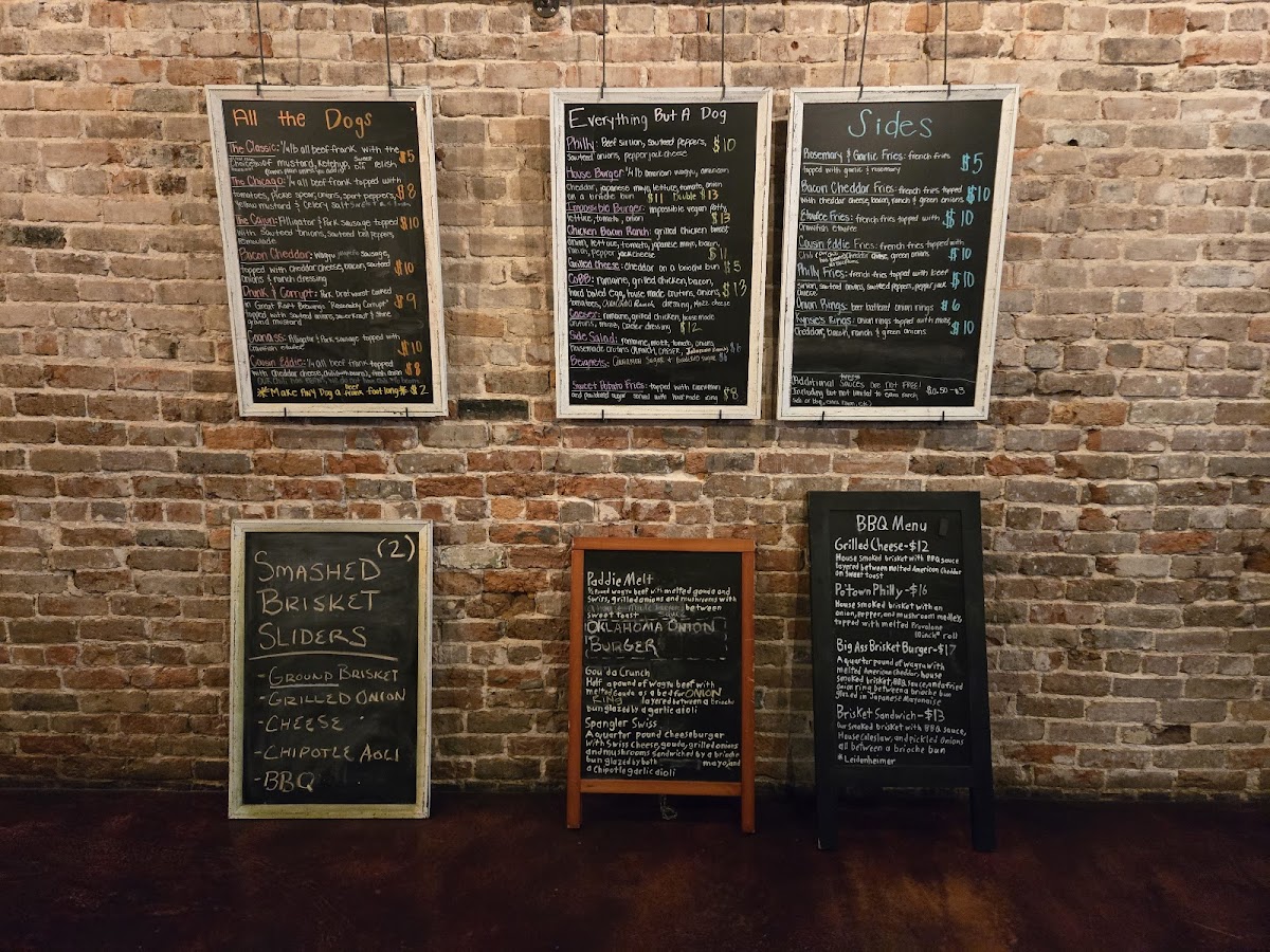 Welcome to The Missing Link, an eclectic eatery located at 504 Texas St #100, Shreveport, LA. This culinary gem features a menu bursting with innovative hot dogs, burgers, and mouthwatering desserts. The standout items include the Cajun Dog, made with alligator and pork sausage, and the savory Bacon Cheddar Dog, a delight for any meat lover.